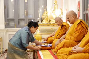 ประธานมูลนิธิฯ พร้อมด้วย รองอธิบดีกรมการแพทย์แผนไทยและการแพทย์ทางเลือก, ผู้แทนสำนักหอสมุดแห่งชาติ, คณะกรรมการมูลนิธิฯ และผู้มีจิตศรัทธา ร่วมพิธีบำเพ็ญกุศล ทักษิณานุปทานถวายเป็นพระราชกุศลแด่องค์อุปถัมภ์มูลนิธิฯ สมเด็จพระเจ้าพี่นางเธอ เจ้าฟ้ากัลยาณิวัฒนา กรมหลวงนราธิวาสราชนครินทร์